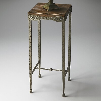 Material: Acacia solid wood and iron Finish: Burnt umber top and hammered pewter Mountain Lodge collection